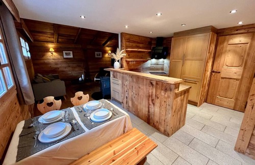 Nestled in a residential hamlet, this cosy apartment is located on the ground floor of a quiet chalet 200 m from the gondola giving access to the 3 Valleys. It can be rented in addition to the chalet as separate accommodation for staff or the rest of the family.