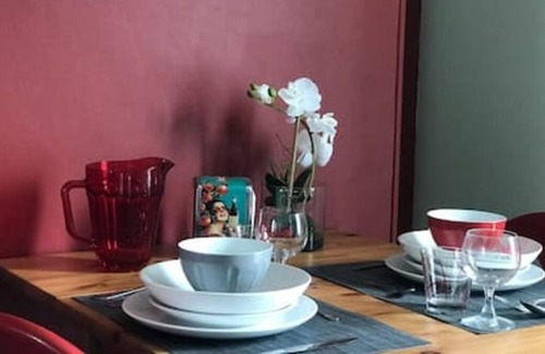 The cottage La Licorne is located in Entrechaux and impresses guests with its view of the mountain. The 40 m² property consists of a living room, a well-equipped kitchen, 1 bedroom and 1 bathroom and can therefore accommodate 2 people. Additional amenities include Wi-Fi, a TV, air conditioning as well as a washing machine. A baby cot and a high chair are also available.
