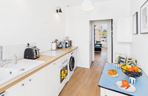 For information: work is currently in progress in the neighbouring building.They take place only during the day, from Monday to Friday.No noise is expected during the weekend.Welcome to Cotten, a beautiful duplex in Concarneau, just a stone's throw from the town centre and a few metres from the sea. You will be charmed by its ideal location, next to the corniche and the Chapel of the Cross: from the beach to the restaurants, you can do everything on foot! Over two floors, discover this carefully renovated small house. Modernity meets the colours of Finistère and the iconic fabrics of Guy Cotten for a unique and warm atmosphere. A large glass door in the living room and a small private courtyard will allow you to enjoy the sun at any time of the day. The accommodation can accommodate up to four people.The apartment opens onto a beautiful, bright living space, including a warm and modern living area, with a television. You will also appreciate a dining area with a dining table and comfortable benches. An independent toilet is located on the first floor.You will then find the friendly, fully equipped kitchen, perfect for preparing your meals after a day of discovery. It also opens onto a small private courtyard, to enjoy breakfast outdoors.When going upstairs, you will find the night area with two bedrooms. The first bedroom is spacious and bright, with a double bed, and through the window you can admire the sea view. The second bedroom has two single beds. Everything is decorated in Breton colours, with yellow, indigo and the sailor stripe print on the curtains and armchairs. A beautiful modern bathroom separates the two bedrooms, with WC and walk-in shower.What we love: the exceptional location of the apartment, its proximity to beaches and the city centre. Just like its bright spaces and its decoration, blending modern design and Breton colours. Do not miss this rare opportunity in Concarneau!Our concierge service offers house linen rental for the duration of your stay: Sheet set + bath towels: 20 € per bed.Bed sizes: 1 bed of 160 and two beds of 90This option is optional, it must be requested when making your booking.The Mariette Concierge team will accompany you with enthusiasm and professionalism during your stay.