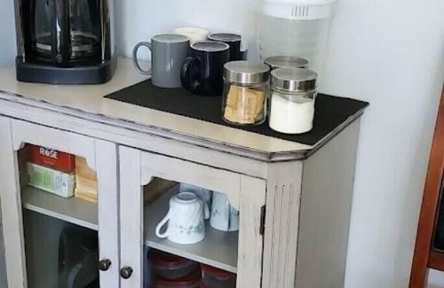 In the Cabin you will find the kitchen fully equipped with basics, plates, cutlery, pots and pans, stove, kettle, toaster, coffee maker, fridge/freezer & microwave. Just bring your favorite foods.