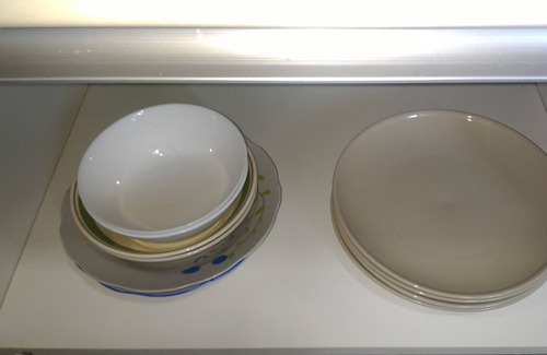 - Kitchen: fridge, stove, pan, pot, cutlery, dishware. Light cooking is allowed