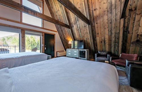 Cove Creek Lodge 201: Poolside Double Queen Fireplace Room | Hotel in Oakland, MD