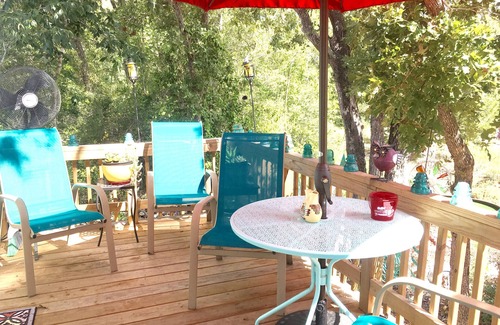 Our Guest House is a cute roomy remodeled Vintage Mobile Home that is comfortably decorated in a Southwestern style and affords you with everything you need for a relaxing stay. From a comfy new King Bed with fluffy pillows to a new double Shower with soft towels and plenty of hot soft water! Upon arrival you will be greeted with assorted snacks and bottled water. In the morning enjoy assorted breakfast foods and the coffee bar to get your day started. Enjoy your coffee out on the new deck, absorbing the sounds of Nature and just feel your stress melt away! The kitchen is complete with dishes, pans, utensils and silverware. Also there is a Weber Charcoal Grill and a Gas Grill should you wish to bring along something to grill! The huge Fire Pit is available for a bonfire and star gazing! 🌠 Wood provided. ( Check with Host for a Burn Ban) If your seeking country quiet then this is the place to get away. If you still need to relax but not the outdoor type we have many movies, books, games (for both children and adults) and Direct TV with HBO, and ESPN that you may enjoy on the sofa bed or 1 of the 2 comfy recliners! We now have Starlink Internet!! You will have access to Netflix, Amazon Prime and HBO Max by using your own Passwords to your personal accounts.