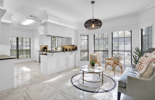 Natural light flows into this bright & cozy ranch style home that is located 5 min from IH-45, restaurants and shopping. 15 min from The Woodlands Market Street & Cynthia Woods Mitchell Pavilion concert venue. Relax and enjoy the spacious open floor plan that flows throughout this bright and fresh home! Spend an afternoon in the screened in outdoor living space while listening to your favorite music on the Bluetooth stereo looking at the beautiful trees and deciding whether you want to go out to a delicious restaurant or order take out on the patio. Either way Casa Blanco is fully stocked and comfy cozy for whatever brings you to our lovely space