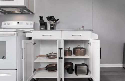 Strawberry Hill Hideaway is fully equipped with everything you need for a comfortable stay. Enjoy the modern kitchen, cozy living spaces, and thoughtful amenities designed to make you feel right at home. Whether you're here for a weekend escape or an extended stay, you'll find that our apartment is the perfect base for exploring all that Kansas City has to offer.