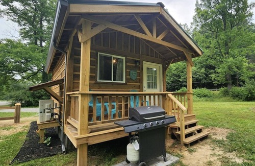 Hidden Gem Cabins welcomes you to the Wanderer (Cabin 2). This is a brand new, comfortable wood cabin and peaceful retreat. Perfect for two people! Located alongside a babbling brook that can be heard while relaxing on your back porch, our 4 cabins are located in a quiet, wooded area. You will be renting the Wanderer (Cabin 2) which is a cozy studio cabin that sleeps two people in a comfortable pillow top queen size bed. The space has one full size bathroom with a shower and a kitchenette with a full-size refrigerator, toaster, griddle, drip coffee maker, and a microwave. There is a propane gas grill out back of your cabin as well as a fire pit to enjoy with complimentary firewood and we invite you to relax in front of the Roku Smart TV or on your private back porch. Sip your morning coffee as you take in the beautiful scenery around you and enjoy visits from the friendly deer and rabbits that live on the property. All linens and towels provided, along with a starter supply of toilet paper, shampoo/conditioner/shower gel. Ice cold air conditioner, cozy heat and Wi-Fi Internet included. And no need to take dirty clothes home with you...there is a coin-operated laundromat on the premises. Our cabins DO NOT ALLOW PETS or emotional support animals.