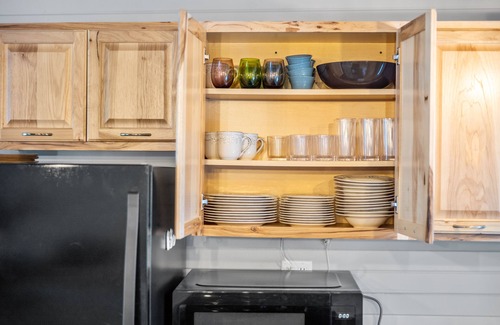 Our living space was designed with families in mind, as we have separate social areas, a game table, and a dining table with seating for 8! Our kitchen is fully stocked for your baking, cooking, and dining needs. Enjoy family time with an assortment of games suitable for all ages. Spend your evenings watching a movie on our 65" smart tv!