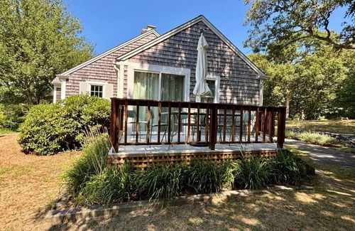 Retreat to the heart of Cape Cod in this restored Cape salt box cottage. Starry Hill Cottage combines elements of old Cape Cod with modern finishes and decor. Located atop a grassy hill and set back from the road, this property offers privacy and includes a fully stocked kitchen, light-filled spaces, cottage gardens, outdoor shower, barbecue grill, central AC, WiFi, Smart TV, and an outdoor deck suitable for enjoying morning coffee.