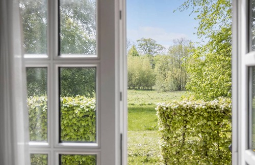 This elegant and sophisticated vacation home is located in the castle park of Hvedholm Castle.