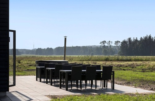 In Gjerrild, not far from the nearest sandy beach, you will find this modern holiday home that combines style, comfort and plenty of entertainment options. There is room for several families or a larger group of friends in this holiday home. Start your day with a relaxed breakfast at the large dining table in front of the open-plan kitchen, which is equipped with everything you need. Large windows provide plenty of natural light and give you the feeling of being surrounded by nature.
