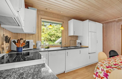 Welcome to your holiday home on Lyngs Strand, which offers you the typical Danish summer house atmosphere. Surrounded by nature, it offers the ideal setting for a relaxing holiday with the whole family. The house welcomes you with a cosy ambience characterised by wood. The contemporary but simple furnishings ensure comfort and a relaxed atmosphere. Enjoy your meals in the inviting open-plan kitchen and the adjoining living area or make yourself comfortable with a book in the cosy sitting area.