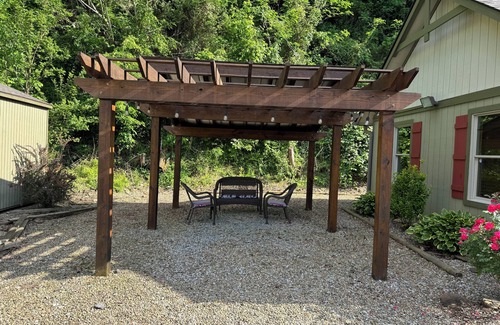 Sorry we are not pet friendly as the owner has severe allergies, but we can be your quick get away if Fido doesn't mind staying with Grandma! We love our sweet/tranqulizing cottage-as you can go out and sit under the Pergola, and listen to the stream run, enjoying your favorite beverage!
