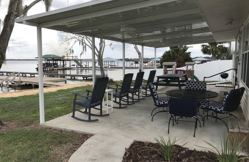 This cozy lake front cottage is a small 3 bedroom/1 bath home overlooking beautiful Lake June. The home is fully furnished including linens, washer, dryer, fully functioning kitchen, TVs, DVD player & wifi. Our house has a well maintained, private dock with a boat lift. The yard features one covered parking space plus plenty of extra room to park and entertain, as well as an exterior back porch with rocking chairs to enjoy the lake side view. Jackson's Bar and Grill is just across the street for some lakeside dining and fun!