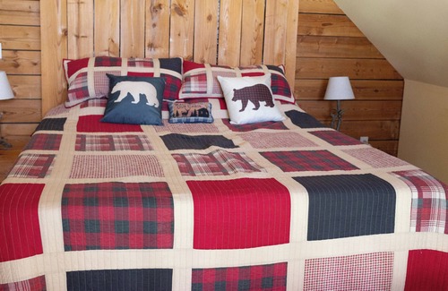 The cabin comfortably accommodates up to four guests. You'll find two cozy bedrooms, each thoughtfully decorated for a peaceful night's sleep. The lofted bedroom features a comfortable king-sized bed, while the additional bedroom offers an equally comfortable queen-sized bed. Fresh linens, blankets, and towels are provided for your convenience as well as a washer and dryer in case you want or need to do your own laundry.