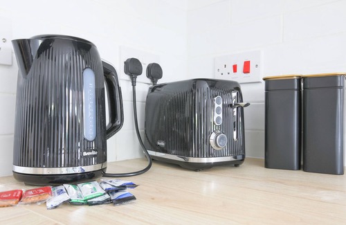 The fully equipped kitchen is a culinary haven, featuring modern appliances and ample countertop space. Whip up a delicious meal or brew a fresh cup of coffee with the Nespresso Coffee Machine to start your day off right. The dining area adjacent to the kitchen provides the perfect spot to enjoy your meals or plan your itinerary for exploring Cardiff.