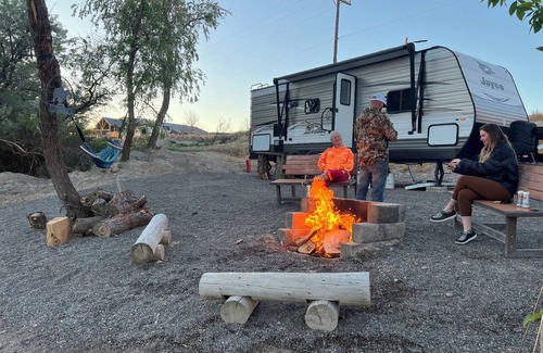 Located right on the river between Melba/ Marsing sits this cozy 1-bedroom RV. This gorgeous property features 1 queen bed, 1 full-ish sized table convertible bed, and 1 small sofa pullout bed (for a child). Has WiFi, AC, heating, microwave, Keurig coffee maker, refrigerator, pots /pans, utensils, TV with DVD player and some movies to choose from.