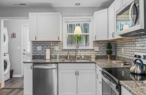 Need to freshen up after a day of adventure? A modern stackable washer and dryer are conveniently located just off the kitchen for your use.