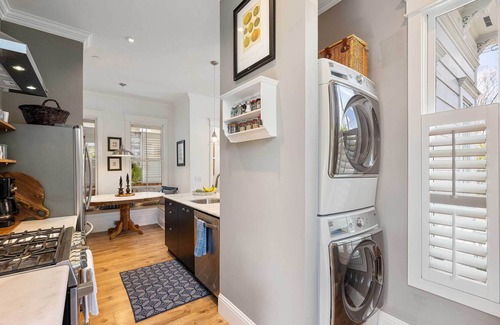 This jewel box of a home features a great room with living area, dining area and a kitchen with high end appliances. The kitchen has an island with bar stool seating for 3, and the dining room table has seating for 4. Just off the kitchen you’ll find a washer and dryer.?The home’s two bedrooms have ensuite bathrooms, and feature comfortable queen sized beds.?