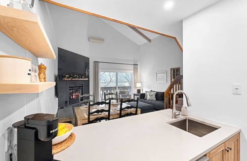 This cozy two-story condo offers some of the best views you can find of Mont-Tremblant and Lake Tremblant! Both the mountain and the lake make this condo a great attraction during all seasons of the year. With one open bedroom and one closed bedroom, the space can comfortably accommodate 4 people - perfect for a couple, family or small group of friends. It's a five-minute drive to the ski village and to the Old Village as well.