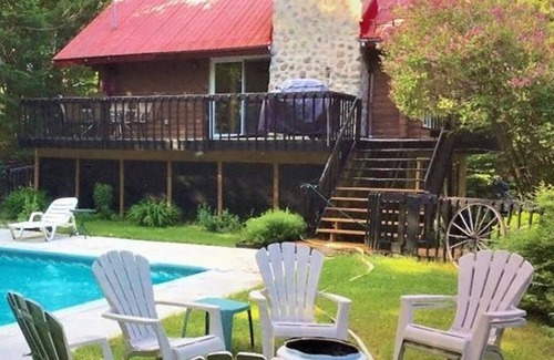 Cottage in the Laurentians. Located at the crossroads of Morin-Heights St-Sauveur and Ste-Adèle.This chalet is surrounded by trees which gives it privacy. Three bedrooms, two full bathrooms, two living rooms, two fireplaces. Large terrace, heated in-ground salt pool. Outdoor spa (whirlpool bath). Please note that the swimming pool is outdoor therefore open from approximately June 7th until September 10th.
