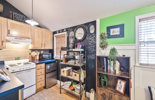 Escape to this studio-style cabin in Villas, NJ, perfect for couples or small families. Enjoy cozy interiors with a queen bed and a futon, smart TVs, and a fully equipped kitchen. The fenced yard with fire pit and deck furniture offers an inviting space for relaxation. Just minutes from the beach, this cottage includes air conditioning, beach gear, and outdoor dining. Ideal for a peaceful, beachside retreat with modern comforts.