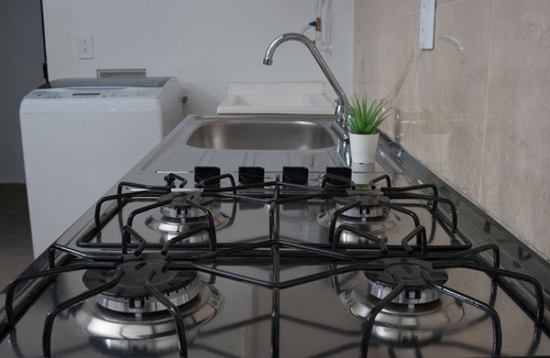 Cozy Studio located at the north of Armenia, in a secure closed urbanisation (Oro negro Ocaso.) Easy to reach by public transportation ( bus or taxi ). The studio is furnished with a Queen size bed, sofa, kitchen, fridge, and washing machine; big supermarket close by; 50 meters away there is a gas station. The most important museum of the city is 10 minutes far from the apartment (walking) Acogedor estudio en el Norte de Armenia. Parque residencial Oro negro Ocaso.