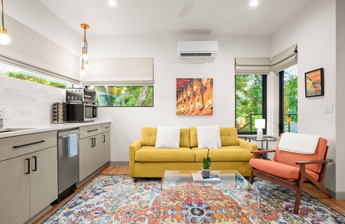 Centrally located in the vibrant Zilker neighborhood, this upscale guest house offers the perfect mix of luxury and convenience. Enjoy your own private outdoor oasis with a serene patio, ideal for relaxation in the heart of downtown Austin.