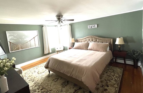 The king bedroom is beautiful and cozy, there is a smaller queen bedroom bathed in calming colors, and a lovely twin bunk bedroom with room for 3. All bedrooms have room darkening curtains if you want to sleep in.