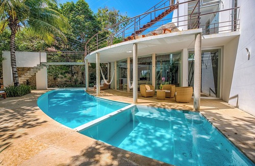 Welcome to Villa Pez Loro, a private tropical getaway impeccably detailed for your enjoyment. Come here to revitalize and enrich yourself. The open design blurs the line between interior and exterior, creating an easy and organic flow between modern comfort and amenities and the serene natural beauty unique to the Riviera Maya.