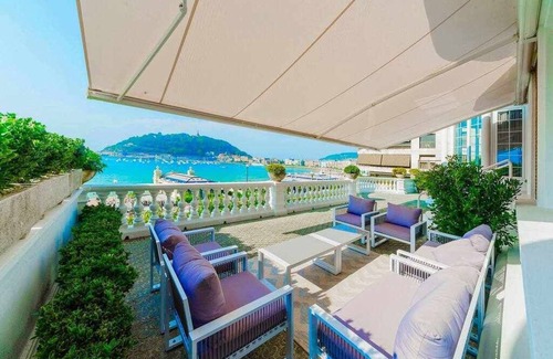 Recently refurbished exclusive apartment with private terrace 200m2 in an spectacular place, in front of La Concha Beach. Large living room with impressive ocean view, Samsung Smart TV75". Fully equipped kitchen with high-end appliances Gaggenau: fridge, freezer, dishwasher, washer, dryer, Nespresso. 4 bedrooms with bathroom in-suite, all bedrooms have Samsung Smart TV50", floor heating, air conditioning. Egyptian cotton linen. Wireless high speed Internet. Private garage for 2 cars and garden.