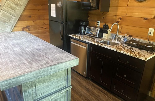 Cruso Creek is a creekside villa with an interior that has been completely remodeled and furnished with cabin décor. It has a fireplace in the living room that can be used year-round. It features a king-size bed, and the living room has a TV. The villa includes a bathroom with a shower and a small kitchen (refrigerator with ice maker, dishwasher, and microwave). This villa also has a clothes dryer, so you don't have to pack a lot of clothes. Towels, washcloths, and bed linens are provided. There are also two chairs on the porch to relax in as well. There is fast Wi-Fi and good cell phone service. It is located about 10 minutes from the Blue Ridge Parkway and downtown Waynesville. Downtown Asheville and Brevard are only about 30 minutes away.