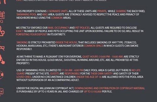 All guests are obligated to read and agree to our house rules prior to booking.