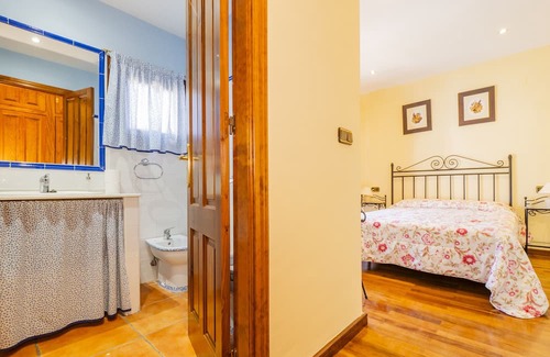 Casa Tita Elvira C expands your horizons with space for up to 12 people in six bedrooms, sharing a pool with a touch of exclusivity. This accommodation is spread over two floors, with a separate entrance and an interior courtyard that connects to the pool area. Central heating and wooden floors extend throughout this space, offering a warm atmosphere next to the fireplace in the living room. The ground floor houses two bedrooms adapted for people with reduced mobility, along with a spacious kitchen and living areas. The upper floor has four more bedrooms, including one with en-suite bathroom and a shared bathroom, all with views of the mountains or the interior courtyard.
