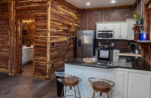 This special place is convenientaly located directly above a coffee shop, in the center of Holden. This space was originally built as the Lyric Theater in the early 1900's and has been recently renovated. As you explore the building you will see much of the original charm. This 2 bed/1 bath apartment, can sleep up to 4 people, and has a spacious living room for spending time together. The bathroom includes a large walk-in stone shower, & the kitchen has everything you’ll need to make a meal.
