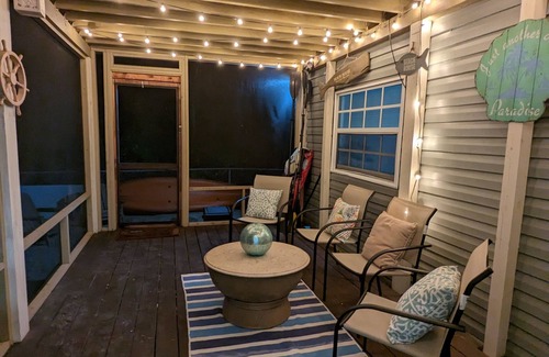 Enjoy a relaxing getaway at this cozy cottage! Tastefully decorated in beach decor and conveniently equipped with kitchenware, wireless internet, flat-screened TVs with Netflix, Hulu, and ESPN access, central A/C, a washer and dryer, towels, and a kayak for your lounging pleasure. This home also offers two screened porches (located in the front and the back of the residence) with bistro lighting and beautiful patio furniture to set the mood for relaxation. This home includes three bedrooms ready for a family of five or six (sleeps 6): The first bedroom consists of a twin day bed that converts to a queen size bed, and the other two bedrooms include queen beds. The private beach and boat ramp are only four blocks down the street. Minutes from beautiful Pennekamp Coral Reef State Park, a popular site for snorkeling, diving, and glass-bottom boat tours). Minutes away from popular restaurants, shopping centers, fishing charters, and bars. One hour from the Miami International Airport.