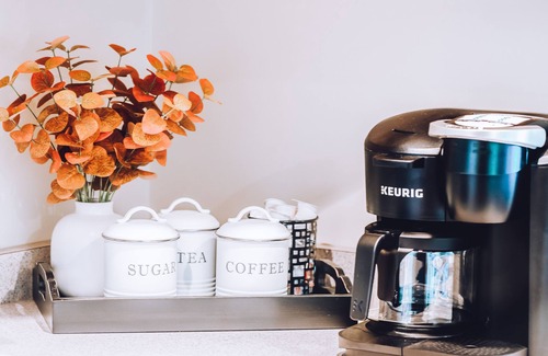 Fully stocked kitchen with dual drip & Keurig coffee makers, plus complimentary coffee, tea, sugar, and creamer. Please supplement kitchen, paper, and laundry supplies for stays of 7+ days.