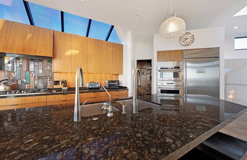 Originally built in 2003, the house underwent a complete rebuild with only part of a single-car garage and subfloor retained. The remodel added 1,000 square feet, bringing the total to 2,533 square feet. The property features 3 bedrooms, 2.5 baths, a great room, a family room, expansive decks, over 900 square feet of southern-facing patios.