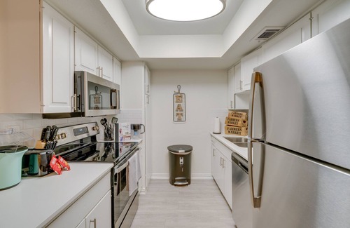 Take a short drive to the beautiful White Rock Lake Park, or visit vibrant downtown Dallas attractions when you stay at this quaint 1-bedroom, 1-bathroom vacation rental. After visiting The Dallas World Aquarium, cool off with a loved one in the refreshing community pool. This bright apartment also features a well-stocked kitchen for home-cooked meals and board games for the kids. Complete the evening with a movie night by the electric fireplace. Your exciting Dallas getaway awaits!