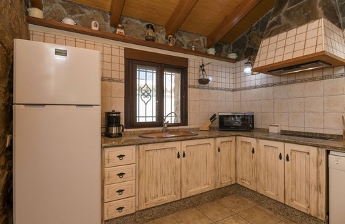 "De Piedra", 3-room house 60 m2. Tasteful and cosy furnishings: living/dining room with open-hearth fireplace, dining table, satellite TV and air conditioning. Exit to the terrace. 1 room with 1 french bed (140 cm, length 190 cm), electric heater. 1 room with 2 beds (90 cm, length 190 cm), electric heater. Open kitchen (mini-oven, dishwasher, 4 ceramic glass hob hotplates, freezer, electric coffee machine). Shower/WC. Terrace roofed. Terrace furniture, deck chairs (4). Facilities: washing machine, children's high chair, baby cot for up to 2 year olds. Internet (WiFi, free). Please note: maximum 1 pet/ dog allowed. Fire extinguisher. VTAR/CA/01459