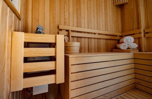 Havuz katında yer almaktadır, buzdolabı, bulaşık makinesi, çamaşır kurutma makinesi, ankastre fırın, mikrodalga fırın, 4’lü ocak, kettle, kahve makinesi, yemek masası, LCD Tv, uydu sistemi 3’lü berjer takımı, tava ve tencere takımı, yemek takımı, çatal bıçak takımı, su ve çay bardağı takımı yer almaktadır. Sauna girişi ve havuz katına çıkışı bulunmaktadır.
