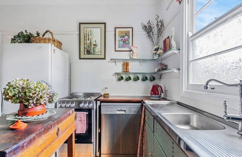 Welcome to Deodar cottage, your cosy and private mountain escape. Surrounded by century-old Deodar trees, enjoy garden views from the sunlit sunroom, complete with floor-to-ceiling windows. Tucked away from the bustling main street yet only a quick minutes walk from the numerous cafes, boutiques and stores. We're dog-friendly, with a fenced backyard. Perfect for a serene Blue Mountains escape!