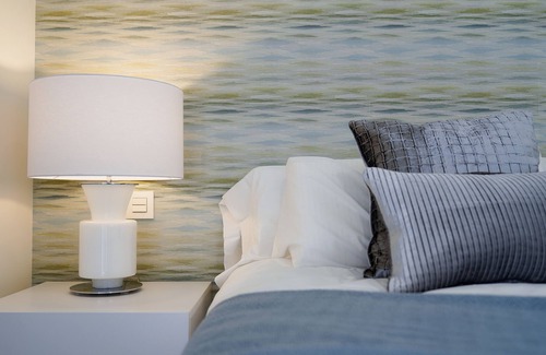 BEDROOM 1: Suite: large double bed, wardrobes, sea view,