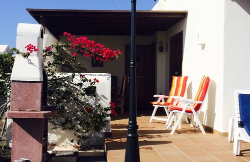 Our villa is located In Playa Blanca. It has marble floors and high ceilings, giving a cool, comfortable, airy spacious environment. It offers 2 bedrooms, 2 bathrooms sleeping up to 5 plus a cot. Alfresco eating area, Laundry room, Fully fitted kitchen, with Gardens and Parking. Sun loungers and chairs provided on the terrace. It is in a superb position overlooking the shared pool. Fibre Wifi included.