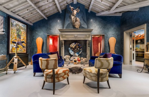 DIMORA ORLANDO mansion with private gardenA Venetian RestorationBeyond Your Wildest ImaginationWhere to start…?! What a journey and what a joy it’s been to follow this inspirational transformation from humble homestead to magnificent mansion in Venice’s Dorsoduro sestiere.As real estate experts of 25+ years’ standing we often think we’ve seen it all, until we come to know a property that, quite simply, blows our minds.Newly restored Venice home of Milan resident and philanthropist Paolo and his family (close friends of Filippo, DI / VOV-founder and owner) and recently launched for short rental to well-deserved plaudits on its dedicated Instagram page, the bespoke Dimora Orlando represents a true labour of love, flawlessly curated by its owners and culminating in an astonishing city base where their family and friends (and now yours!) can unite in unparalleled surroundings to celebrate the sheer pleasure of being together in Venezia.A rare Venetian residence for which the term ‘treasure chest’ was coined, the eclectic interior is a well-heeled maximalist’s dream. Situated within a peaceful "passeggiata" of the dazzling Zattere waterfront, the Peggy Guggenheim Collection, the iconic domes of Salute and the former home of legendary designer Hubert de Givenchy in what is surely one of the most prestigious and genteel parts of Dorsoduro, and indeed in all of Venice – and nurtured throughout its (extensive and reassuringly expensive!) rejuvenation by an exceptionally savvy crew of craftsmen and the architectural experts at ArchFlorence – this jaw-dropping mansion sleeps 10 (+2) within a feather-soft cocoon of comfort, where notable original art, cherished family heirlooms bridging generations past and present, and a whirlwind of whimsical collectables vie for your attention and serve to underscore the heady vibe of unrestrained indulgence. Encapsulating 5 seductive en suite double bedrooms sparkling with Italian confidence and personality, and spanning a staggering 470 sqm over 3 luxury-laden floors with a pretty courtyard garden to the rear, the fully air-conditioned dimora boasts an internal lift serving all floors (a rarity in Venice) and accommodation comprising:Ground FloorA private front door with keylock and digital electronic keypad leading into the elegant entrance hallway with stairs or lift to the 2nd (top) floor, where we find Dimora Orlando’s primary living spaces and where we start our internal tour working down floor by floorLift opening directly into the…2nd Floor, home to:An extraordinary double sitting room where deep sea-green polished marmorino walls recall the tumultuous waters of ocean-going adventure and the vaulted whitewashed timbers overhead act as a dramatic backdrop to a series of exceptional furnishings and objets d’art Original paintings by celebrated English artist Billy Childish* adorn the walls, while plush hand-loomed Fortuny and Rubelli fabrics and the most luxurious seating and velvet sofas you can imagine, surround a glass-and-Perspex coffee table protecting a slice of fossilised tree from the Triassic period (252-201 million years ago). A pair of throne-like Russian pine chairs by famous Italian sculptor Mario Ceroli from the ‘Mobili Nella Valle’ series for Poltronova, Florence (1977) stand sentinel at the room’s far end opposite ‘Cavalli’, an equine relief in balsa and Russian pine, also by Ceroli. A carved monumental fireplace, framing a hand-crafted circular glass and enamel mirror by OOM, provides a magical focus to the room, while taking pride of place above it stands a wall pedestal mount of a Greater Kudu antelope nobly gazing out across the room in all its defiant glory*’High Atlas Walker’ (2010) and ‘Spirit Guides and Other Guardians Joining Heaven and Earth’ (2022)A superbly equipped beamed primary kitchen in green with granite worktop, mirrored splashback, iconic Fornasetti decorative porcelain wall plates and – with a nod to those traditional Venetian bacari (traditional taverns) still in existence – a collection of antique copper water pitchers hanging up on highA triumph of a dining room in toasty ‘Uluru’ terracotta with an oval dining suite hosting 12 guests beneath a twinkling Murano chandelier, flanked on one side by Robyn Burgess’s ‘Snowplough, Bloodwood Forest, 2008’ purchased by Paolo at auction on a recent trip to Australia and, on the other, a reinterpretation by Giulia Michon Pecori of ‘The Nubian Giraffe’ by Jacques Laurent-Agasse, 1827 Returning to the far end of the sitting room and passing the custom-built library, which displays an enchanting model of an antique Dutch Nef fully rigged sailing ship – a hint at the owner’s long shipbuilding heritage – we in turn reach…The softly lit and sensual principal bedroom in sandy desert shades with a double bed, a mesh-panelled wardrobe, a splendid pair of KOK Maison ‘Emmanuelle’ Peacock rattan armchairs and, instilling the room with a fiery sense of drama, Carlo Gavazzeni Ricordi’s colourful ‘Theatres of Invention’ photographic artwork, while the pristine tawny-onyx en suite bathroom with Devon&Devon rolltop bathtub and separate shower is simply divineDescending this floor by stairs or lift, we enter the…1st Floor with its maritime vibe where we find 3 further ship-shape en suite bedrooms:A delightfully presented 2nd double bedroom continuing the seafaring theme with a double bed, a seating area, a mesh-panelled wardrobe and the most decadent sun-and-sea-inspired en suite bathroom in striking blue marble and marmorino I think we’ve ever set eyes on. Characterfully kitted out with a Devon&Devon Mida rolltop bathtub in brushed gold, a separate shower, satin brass fittings and decorated with a collection of adorable box-framed model sailing vessels… it’s a gorgeous space for a spot of pampering that’s sure to float your boat!A charming 3rd double bedroom in neutrals with a double bed that can be made in