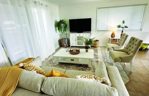 Brilliant Views. Catch a Fish. Read a book. Enjoy this wonderful location and a beautifully appointed cottage. Views are spectacular next door to a beautiful reserve and a huge mango tree! Three beautiful bedrooms; 55 inch TV; NBN connection. Super comfort; Verandah and main bedroom have spectacular water views overlooking mid North Stradbroke Island. A kayak is available for use and a boat can be provided (25hp Mercury) at an additional $100 per day. Russell Island has x2 licensed clubs and a shopping centre.