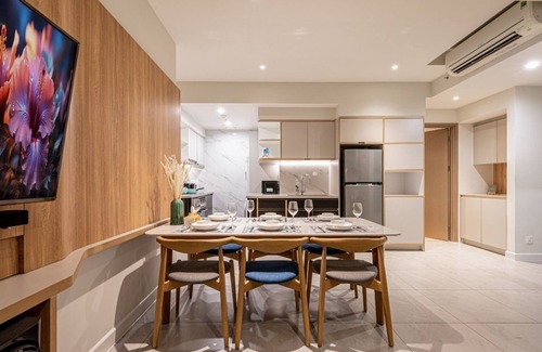 This stylish 3-bedroom haven features a unique blend of Scandinavian-inspired design and a refreshing "tropical oasis" aesthetic. Relax in the spacious living area, adorned with high-quality furnishings, or whip up delicious meals in the fully equipped kitchen. Indulge in premium amenities like the sparkling swimming pool or maintain your fitness routine at the on-site gym.