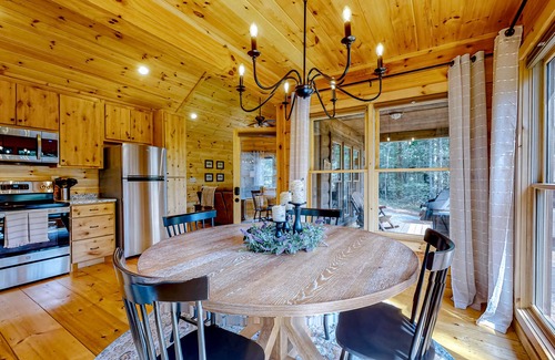 Dog-friendly cabin with covered porch, patio, firepit, fireplace, & grill is located in Hidden Lake. Dog-friendly cabin with covered porch, patio, firepit, fireplace, & grill provides accommodation, featuring Barbecue/Outdoor Cooking, Internet, Laundry, among other amenities. This Cabin features Barbecue/Outdoor Cooking, Internet, Laundry, to make your stay a comfortable one.