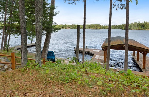 Wake up to the toasty aromas of freshly brewed coffee and head outside to the dock to enjoy the first chirps of the surrounding wildlife. Spend your afternoons playing in the cool waters of Stone Lake, then come home to kick back in the open and expansive living area. You'll love catching up on a favorite mystery novel on one of the comfy couches and watching movies or shows on the enormous wall-mounted flatscreen TV above the wood-burning fireplace. Go for a long walk with the family dog after a satisfying al-fresco meal on the back deck, coming home to relax in the sauna or stargaze with marshmallows and a guitar around the campfire pit. Whether you're here for the fantastic summer activities or the cozy wintertime comforts, Stone Lake has something for everyone!