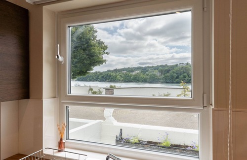 Entering into the light and bright sitting room, you'll find a Smart TV, DAB radio, a log burner, comfortable seating and a 6-seater dining table with a view into the kitchen and across the water beyond.
