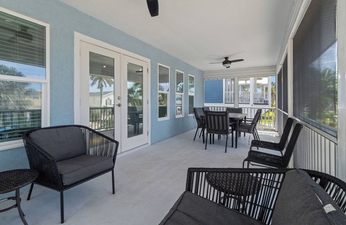 *Dolphin Run Retreat* New Beach Home. 5537 Palmetto St.Ft Myers Beach.Located on Mid-Island within 3 minute walking distance to Gulf of Mexico white sugar sand beach.Close to Publix Supermarket and About 2 miles from Time Square.Enjoy The heated pool under covered enclosure with a private Paradise setting!!Perfect for family vacation or couple retreats.Just bring your clothes, food, beverages and sun screen to enjoy your stay. Fully renovated after hurricane Ian, 5 flat screen tvs, stainless steel appliances and granite countertops throughout.High speed wifi internet and direct tv provided.Screened lanai on upper level off kitchen.Lower level extra bathroom with extra place to hang out or sleep.Gas grill, beach chairs, games, beach towels and wagon provided for your enjoyment.Our property is privately managed to ensure the utmost care and service to our guests.